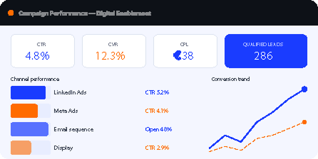 Execution support to align creative, forms, tracking, and CRM handoffs — Closing the gap between campaign and pipeline so nothing leaks